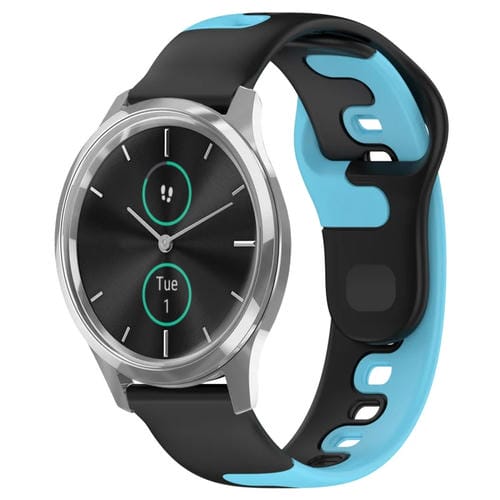 Correa de Silicona para Garmin Vivomove Luxe 20mm (Negro + Azul)