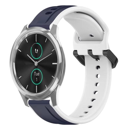 Correa de Silicona para Garmin Vivomove Luxe 20mm con Bucle Convexo (Azul Medianoche + Blanco)