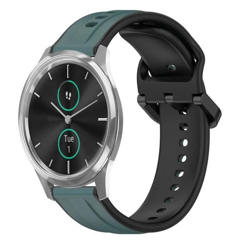 Correa de Reloj para Garmin Vivomove Luxe Silicona Dos Colores Bucle Convexo 20mm (Verde Oliva + Negro)