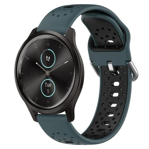 Correa de Silicona para Garmin Vivomove Style 20mm Dos Colores Transpirable (Verde Oliva + Negro)