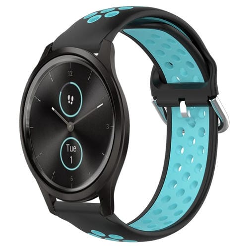 Banda de Reloj Silicona Deportiva para Garmin Vivomove Style 20mm Transpirable Perforada (Negro + Azul)
