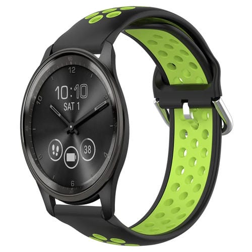 Correa de Reloj para Garmin Vivomove Trend 20mm Silicona Deportiva Transpirable Perforada (Negro + Lima)