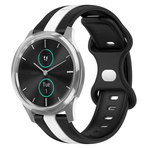 Correa de Reloj Para Garminmove Luxe 20mm Silicona Dos Colores Hebilla Mariposa (Negro + Blanco)