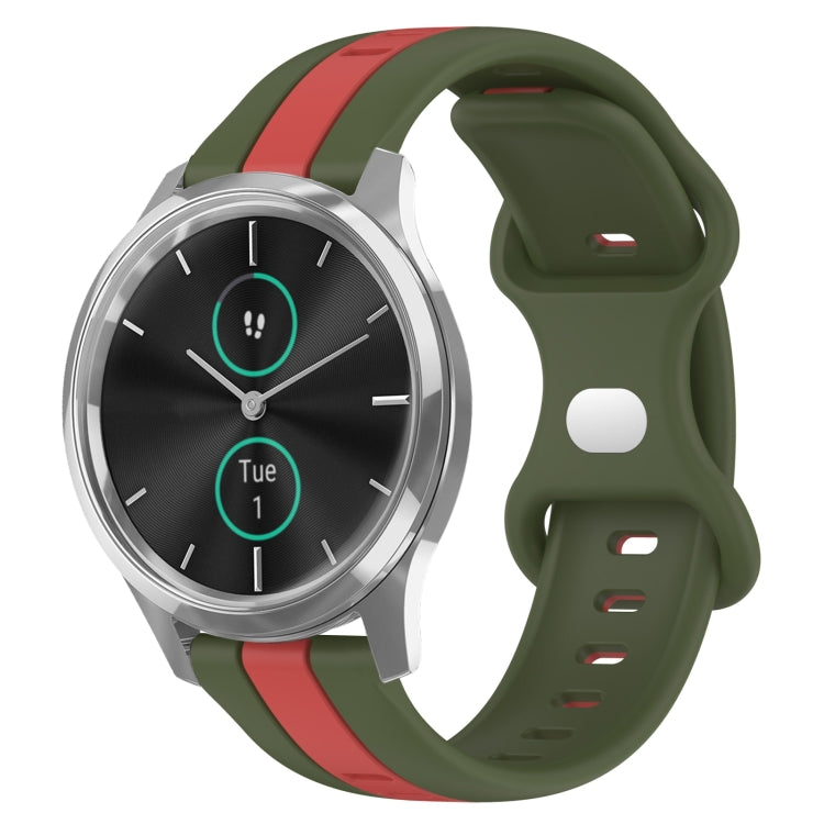 Correa de Reloj de Silicona para Garminmove Luxe 20mm con Hebilla de Mariposa (Rojo + Verde Militar)
