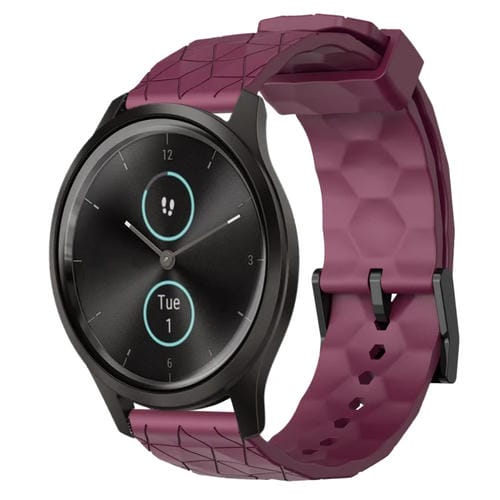 Correa de Silicona para Garminmove Style 20mm Patrón de Fútbol (Rojo Vino)
