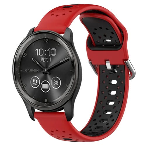 Correa de Reloj para Garminmove Trend Silicona Bicolor Transpirable 20mm (Rojo + Negro)