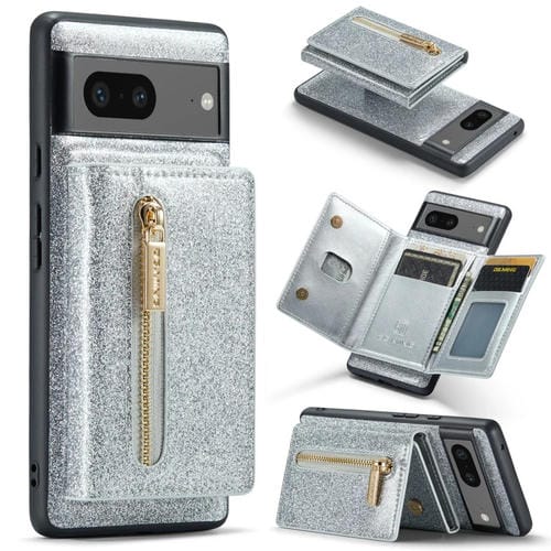 Funda de Cuero Dg.Ming M3 Series para Google Pixel 7 con Glitter Powder y Card Bag (Plata)