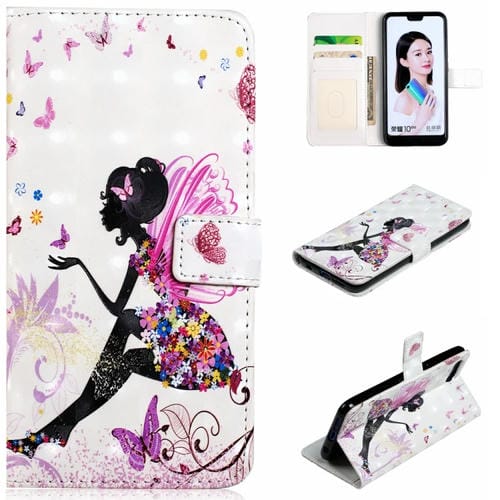 Funda de Cuero para Honor 10 con Dibujo 3D en Relieve al Óleo (Hada de Flores)