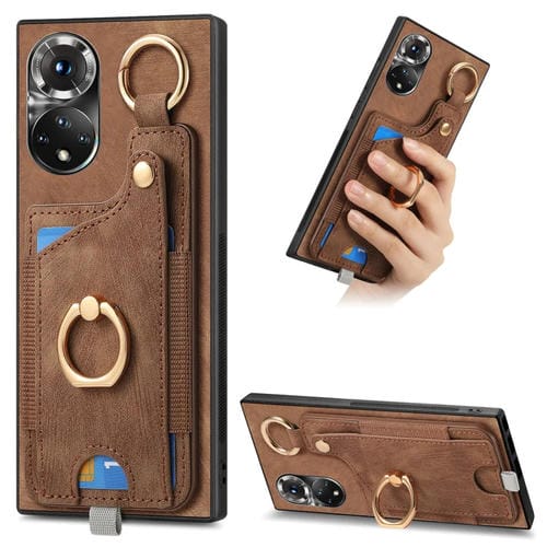 Funda para Honor 50 con Bolsa para Tarjeta, Anillo y Lazo para Colgar (Marrón)