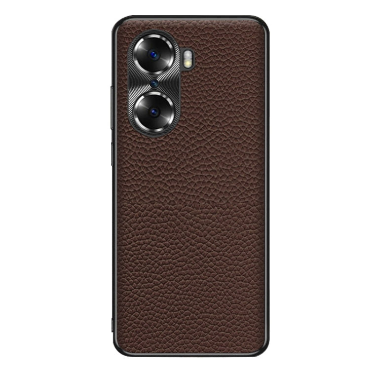 Funda de Teléfono Honor 60 Pro Cuero Genuino Textura Litchi (Café)