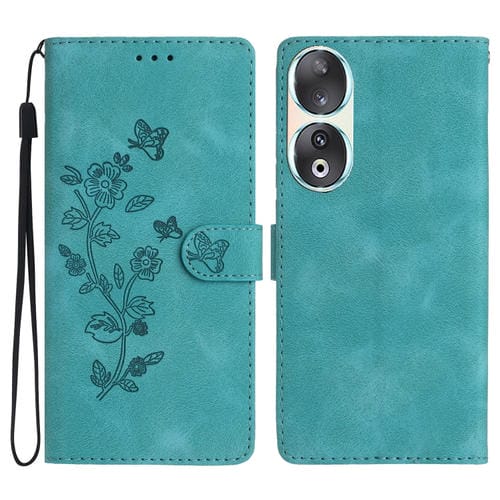 Funda de Cuero para Honor 90 con Estampado de Mariposa y Flores (Azul Cielo)