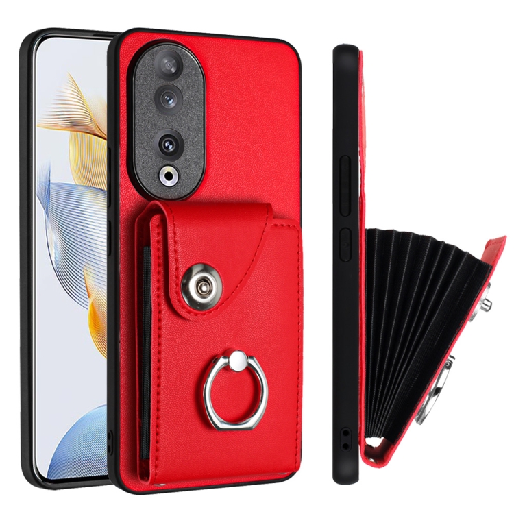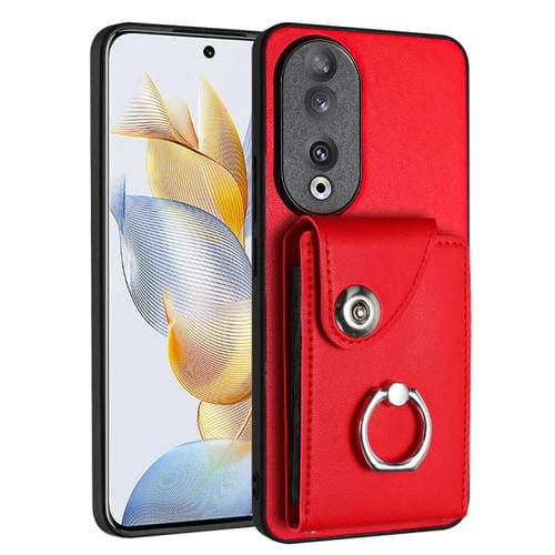 Funda para Honor 90 de PU con Soporte para Anillo y Bolsa para Tarjeta (Rojo)
