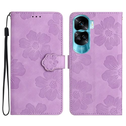 Funda de Cuero para Honor 90 Lite con Estampado de Flores (Púrpura)