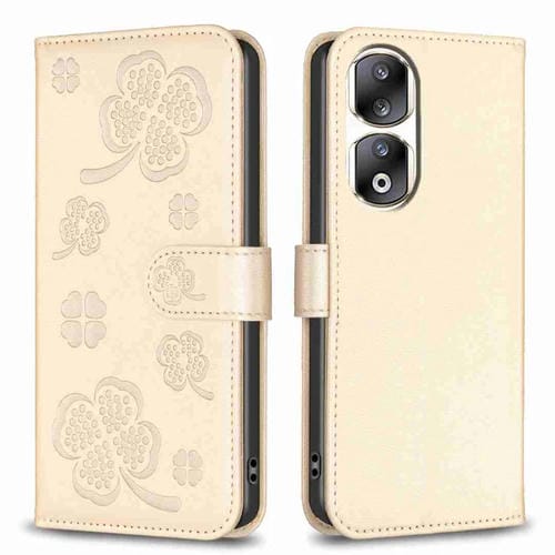 Funda de Cuero para Honor 90 Pro con Relieve de Cuatro Hojas (Dorado)