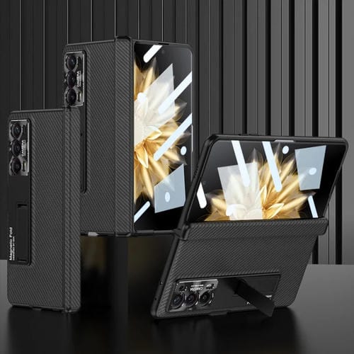 Funda para Honor Magic V2 Gkk de Cuero con Tapa, Bisagra Magnética y Soporte (Fibra de Carbono)