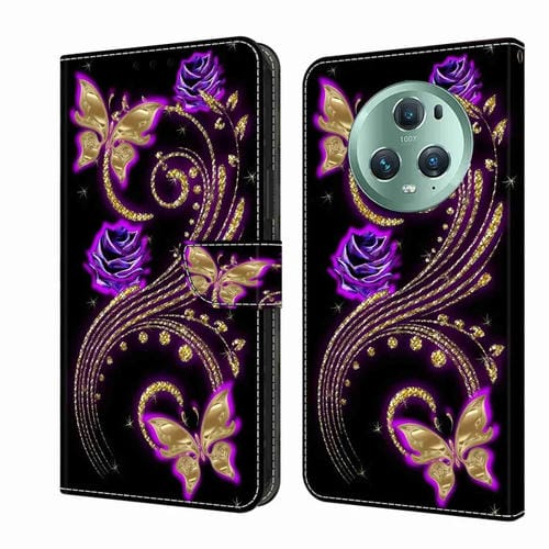 Funda Protectora de Cuero para Honor Magic5 Pro Crystal 3D a Prueba de Golpes (Mariposa de Flor Púrpura)