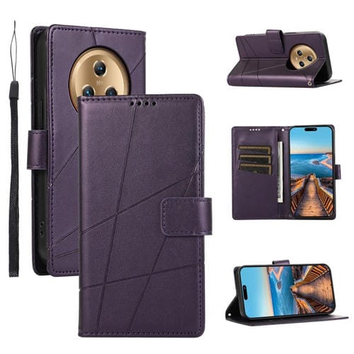 Funda para Honor Magic5 Pu con Línea en Relieve y Textura de Cuero Genuino (Púrpura)