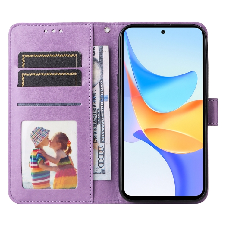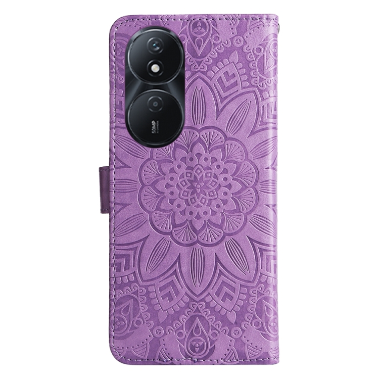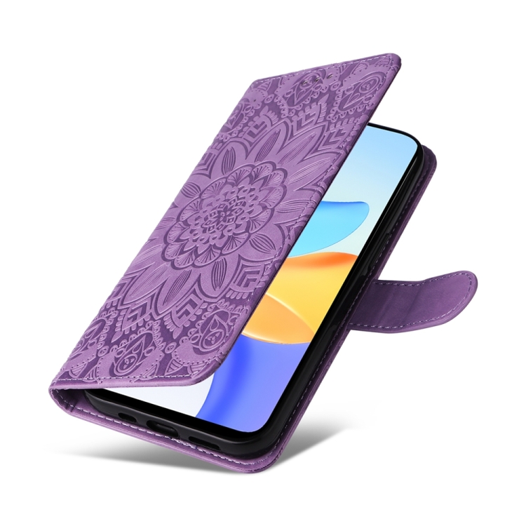 Funda para Honor Play 50 Plus de Cuero con Girasol en Relieve (Púrpura)