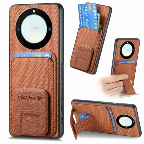 Funda para Honor X40 con Soporte Plegable y Bolsa para Tarjetas de Fibra de Carbono (Marrón)