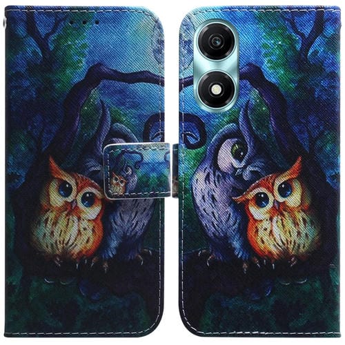 Funda de Cuero con Tapa para Honor X5 Plus y Play 40C con Dibujo Búho de Pintura al Óleo