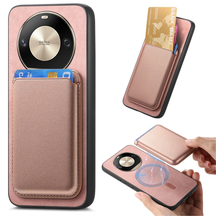 Funda para Honor X50 Pro 5G Retro Magsafe Card Bag PU con Contraportada (Rosa)