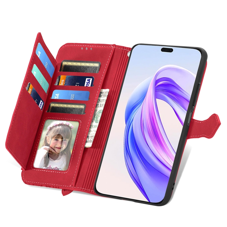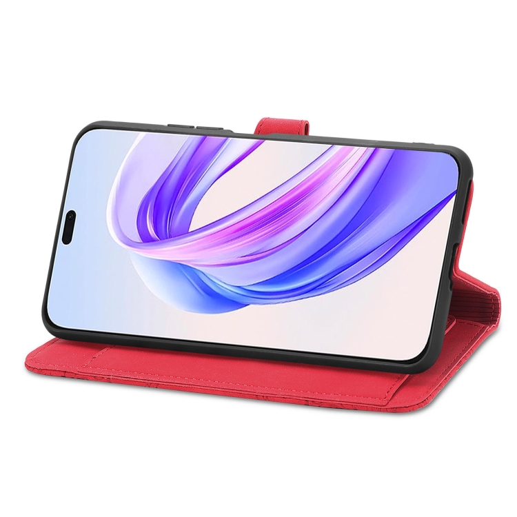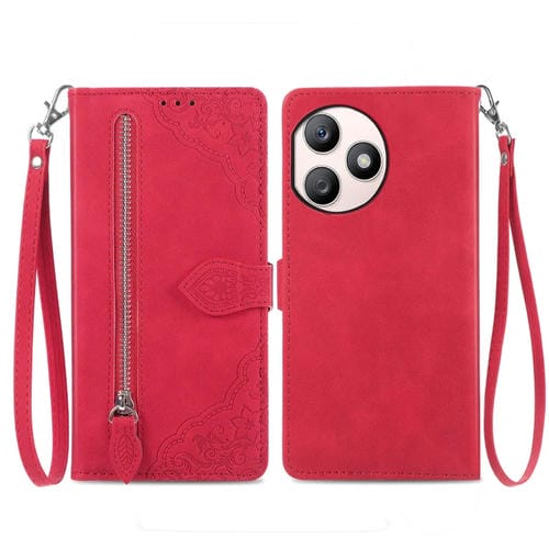 Funda para Honor X50I de Cuero con Cremallera y Flores en Relieve (Rojo)