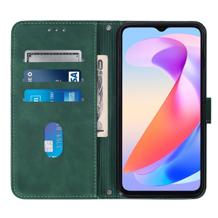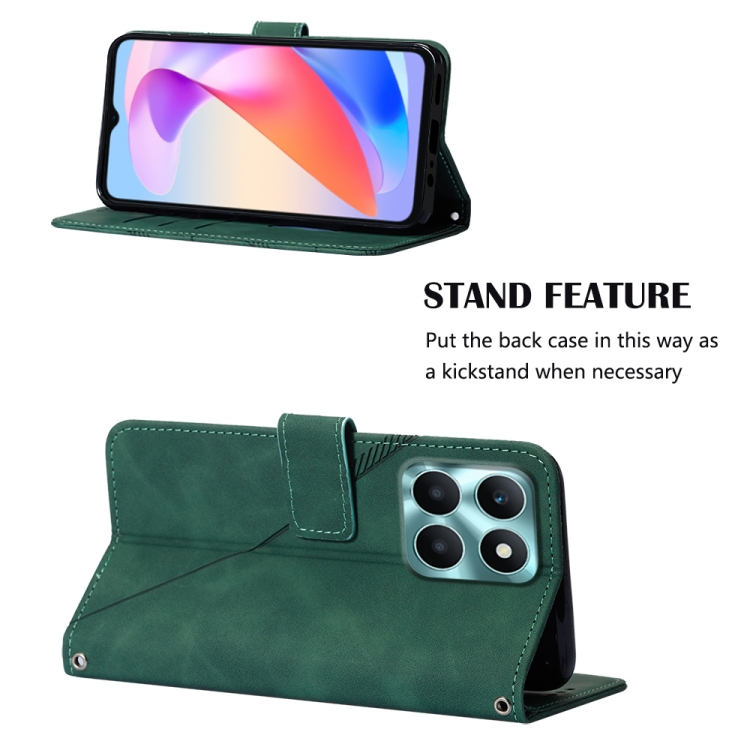 Funda para Honor X6A Crossbody de Cuero con Tapa en Relieve 3D (Verde Oscuro)