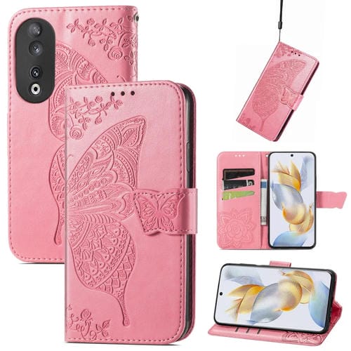 Funda para Honor X6A de Cuero con Relieve Flor de Amor y Mariposa (Rosa)