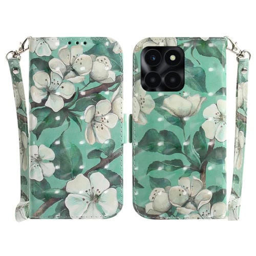 Funda para Honor X6A de Cuero con Tapa Horizontal y Diseño 3D Flor de Acuarela