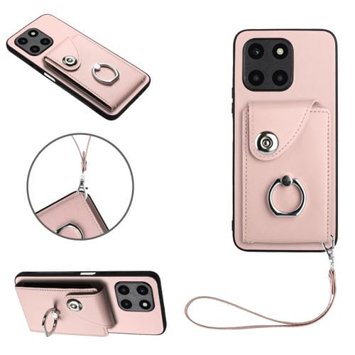Funda para Honor X6A Global con Organ Card Bag, Ring Holder y Cordón (Rosa)
