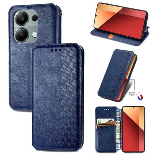 Funda de Cuero Magnético Prensado para Honor X9B Cubic Grid (Azul)