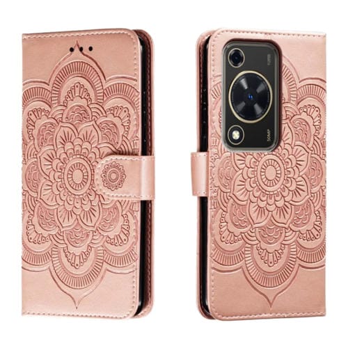 Funda de Cuero para Huawei Enjoy 70 con Patrón en Relieve Sun Mandala (Oro Rosa)