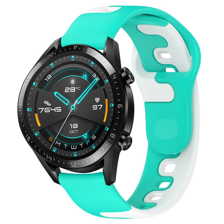 Correa de Silicona para Huawei GT2 46mm 22mm Doble Color (Cian + Blanco)