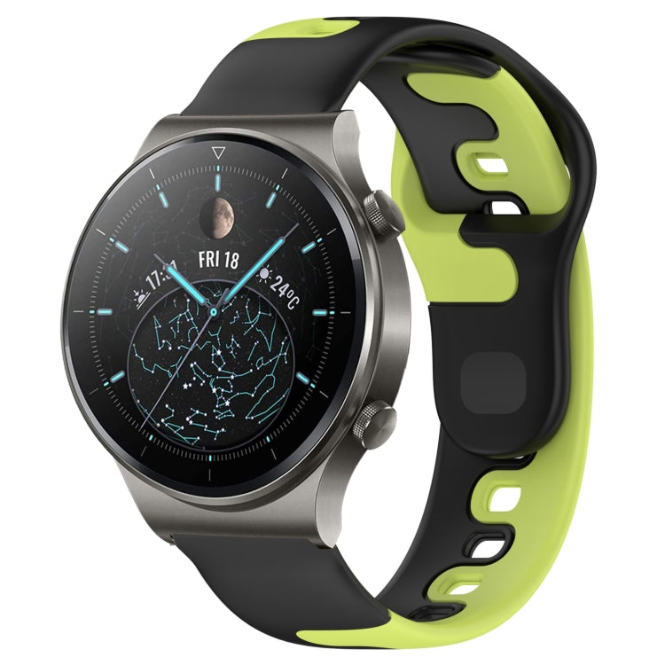 Pour bracelet de montre en silicone bicolore Huawei GT2 Pro 22 mm (noir + vert)