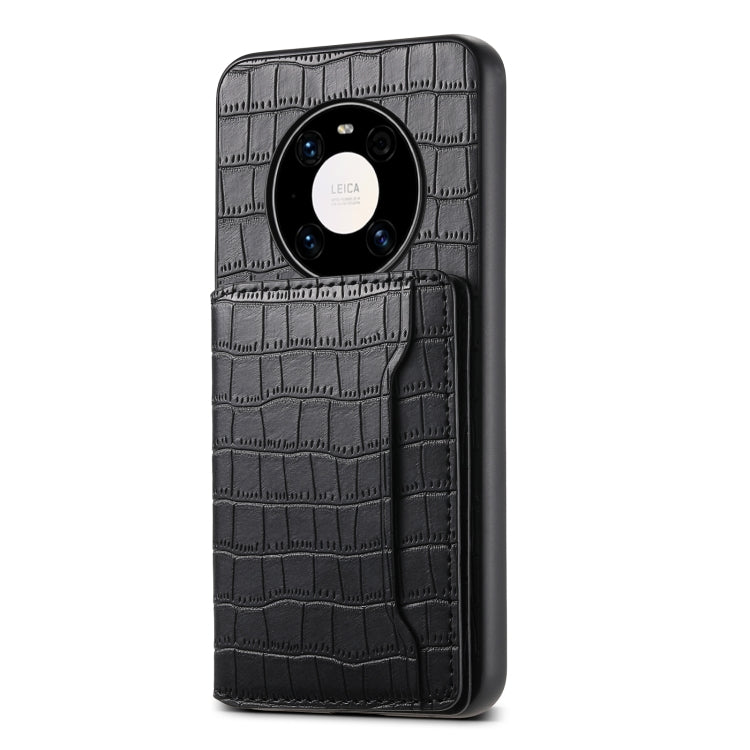 Funda para Huawei Mate 40 Pro con Diseño Bolsa para Tarjetas y Textura de Cocodrilo (Negro)