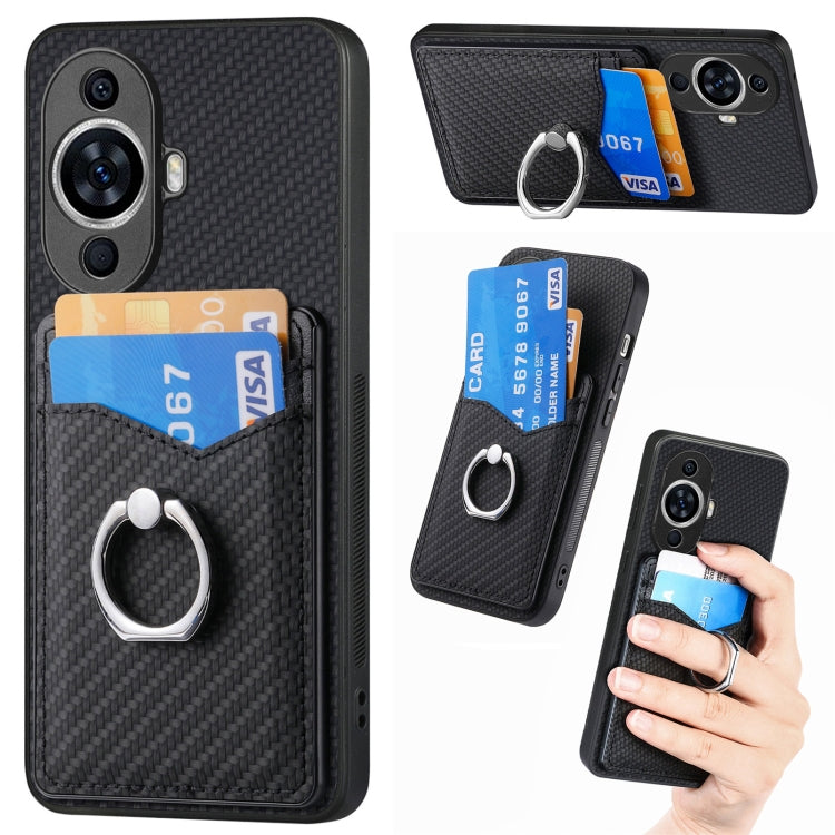Funda para Huawei Nova 11 con Anillo y Billetera para Tarjeta de Fibra de Carbono (Negro)