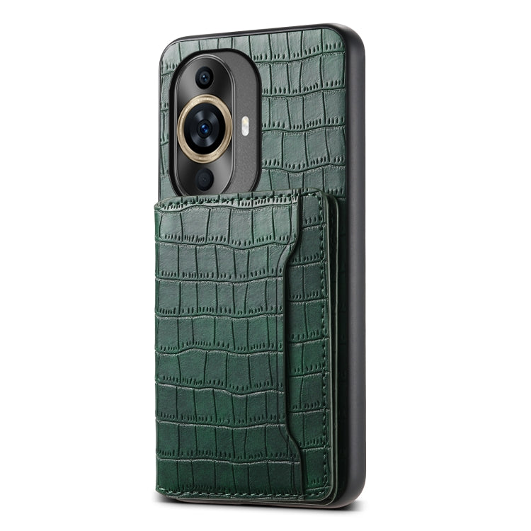 Funda para Huawei Nova 11 con Diseño Bolsa de Tarjeta y Textura de Cocodrilo (Verde)