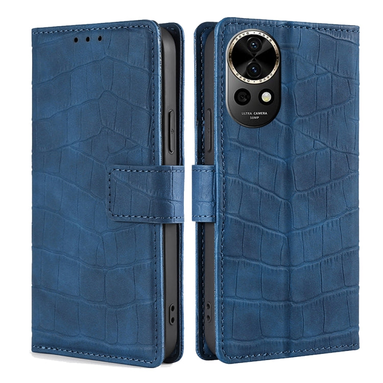 Funda para Huawei Nova 12 5G de Cuero con Cierre Magnético y Piel de Cocodrilo (Azul)