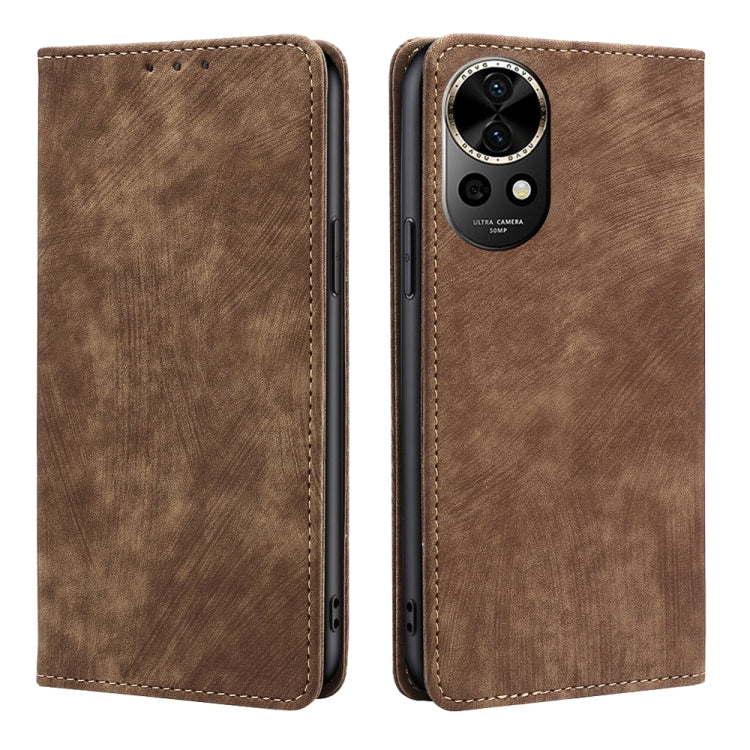 Funda de Cuero Magnética para Huawei Nova 12 5G con Rfid y Cepillo Antirrobo (Marrón)