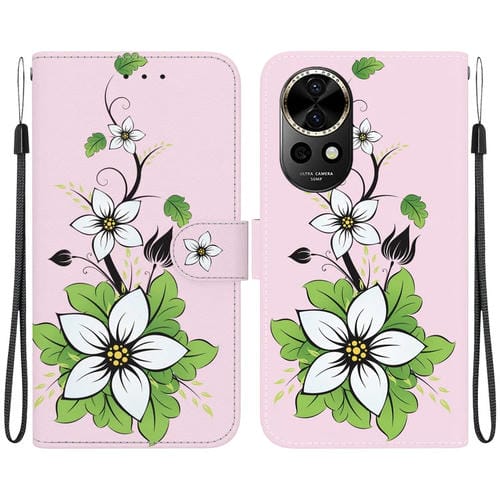 Funda de Cuero para Huawei Nova 12 con Dibujo Coloreado y Textura de Cristal (Lirio)