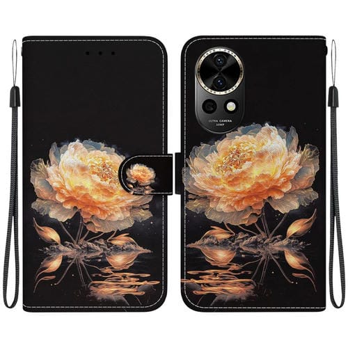 - 1x Funda de Cuero para Huawei Nova 12 con Dibujo Coloreado y Textura de Cristal (Peonía Dorada)