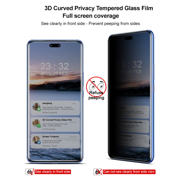 Película Protectora de Vidrio Templado Imak 3D Curved para Huawei Nova 12 Pro / 12 Ultra Antiespía