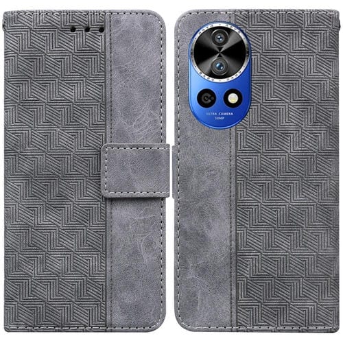 - 1x Funda de Cuero para Huawei Nova 12 Pro con Relieve Geométrico (Gris)