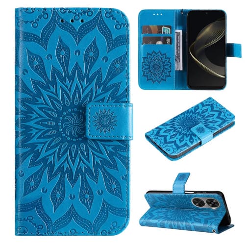 - 1x Funda para Huawei Nova 12 Se y Nova 11 Se de Cuero con Tapa y Patrón de Girasol en Relieve (Azul)