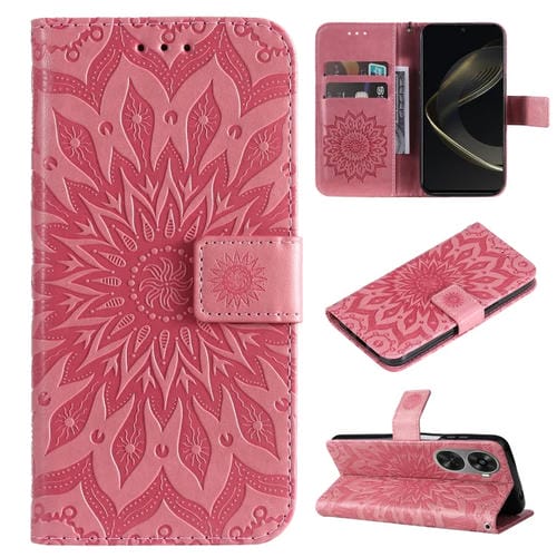 Funda para Huawei Nova 12 Se y Nova 11 Se de Cuero con Tapa y Patrón de Girasol en Relieve (Rosa)