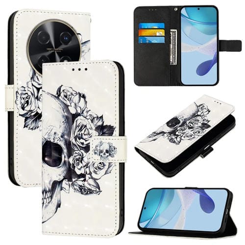 Funda de Cuero para Huawei Nova 12I Global con Tapa Horizontal 3D Painting (Calavera)