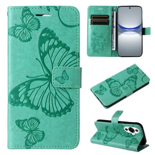 Funda de Cuero para Huawei Nova 12S con Tapa y Patrón En Relieve de Mariposa 3D (Verde)