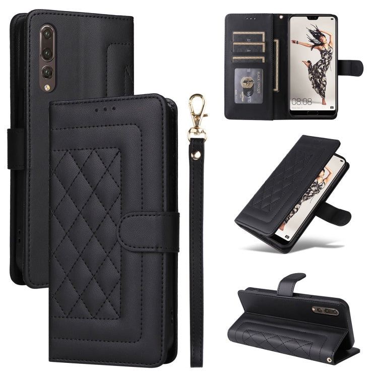 Funda de Teléfono Huawei P20 Pro con Tapa de Cuero Diamond Lattice (Negro)