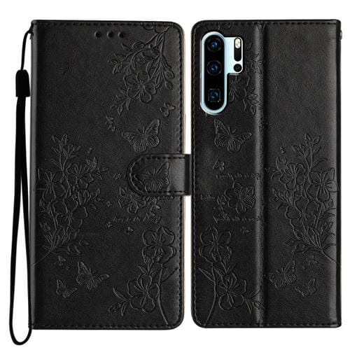 Funda de Cuero para Huawei P30 Pro Butterfly Love Flower en Relieve (Negro)