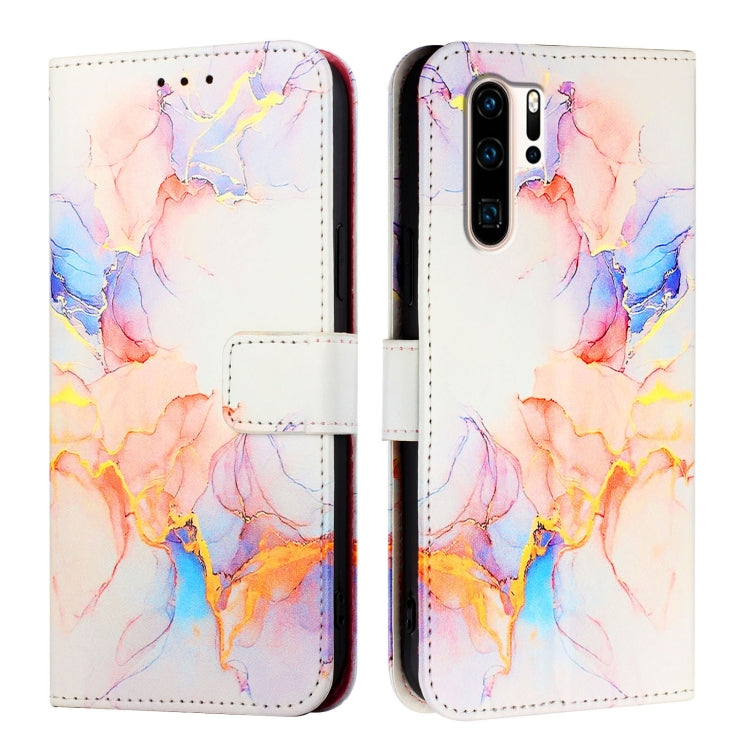 Funda de Cuero para Huawei P30 Pro Pt003 con Tapa y Patrón Mármol (Blanco)